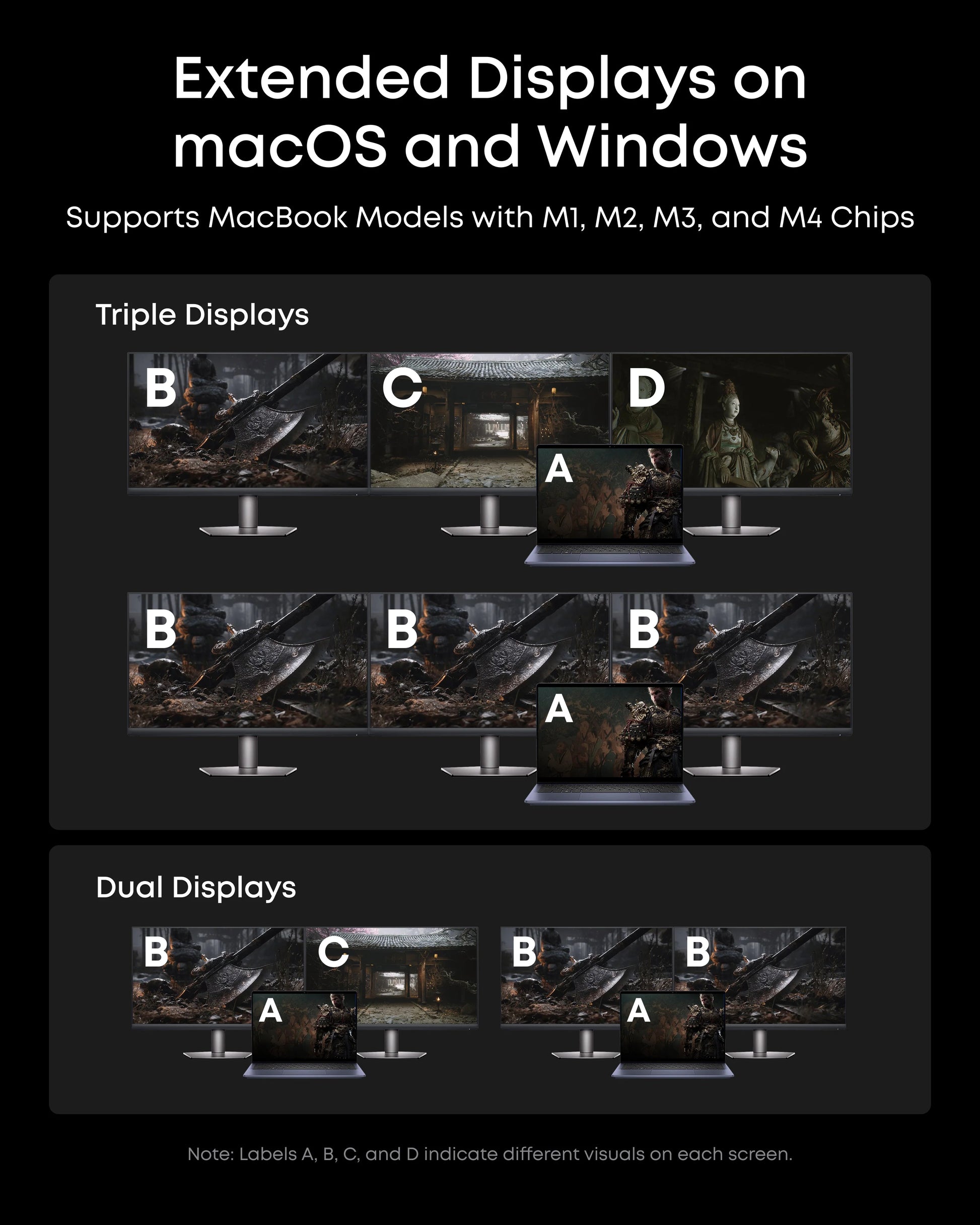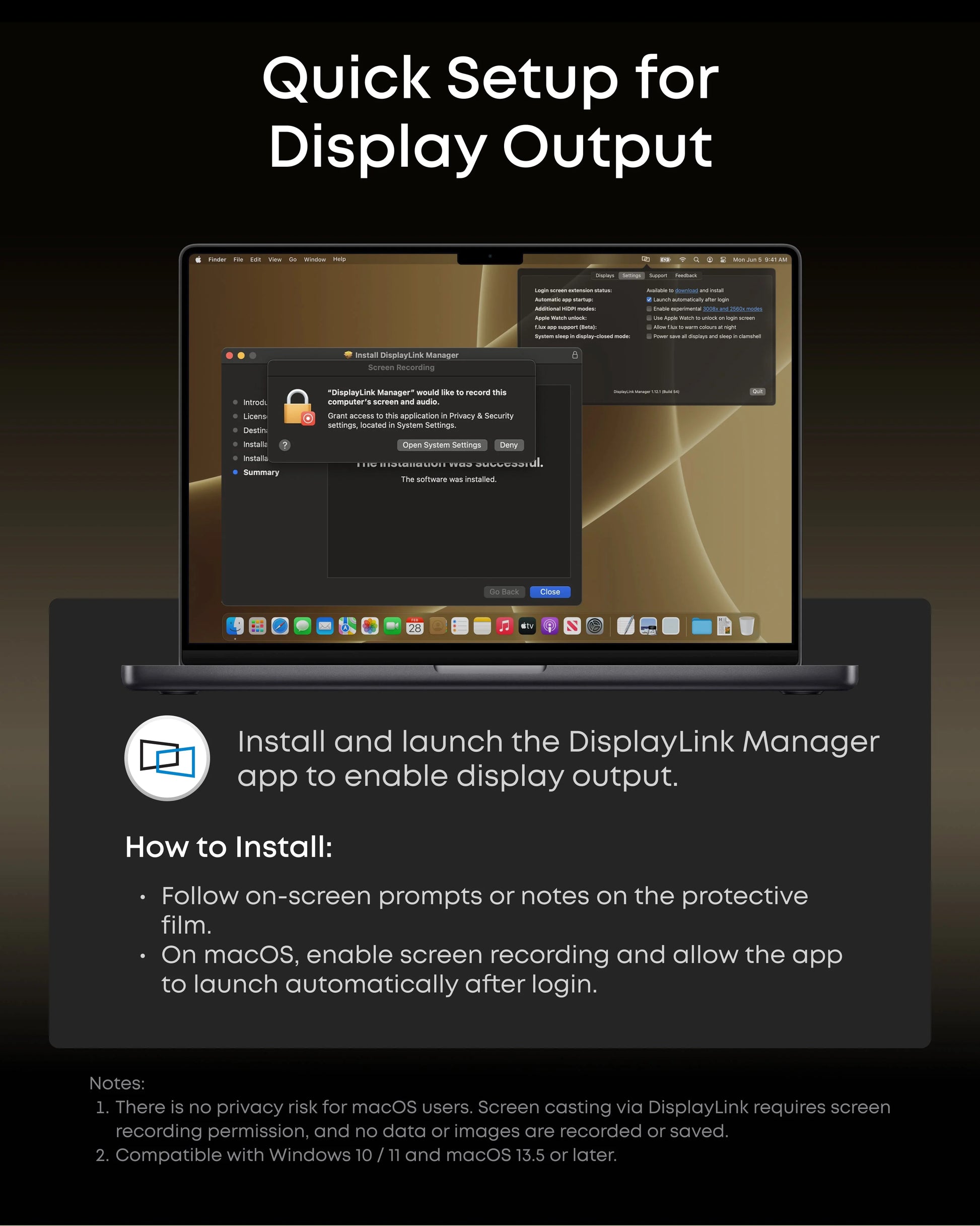 Note: 8K output requires an 8K-capable monitor. DisplayLink driver installation is required.